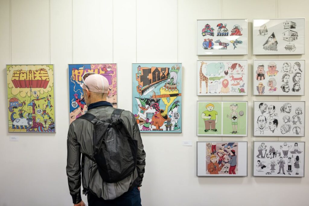 Vedle nich budou k vidění i plakáty vzniklé jako soutěžní návrhy v rámci otevřených výzev, které se nesou ve stejném duchu – jsou hravé, výrazné a někdy záměrně přeplněné drobnými prvky a odkazy. Výstavu dále doplní ilustrace a komiksy pro děti, jež ukazují autorovu přístupnější, odlehčenou polohu – na rozdíl od jeho expresivnější tvorby určené spíše dospělému publiku.