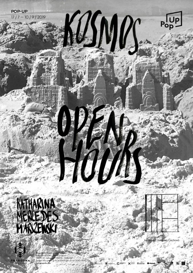 Výstavu Kosmos Open Hours, kurátorovanou Veronikou Čechovou, vytvořila umělkyně Katharina Mercedes Marszewski (*1980). Aktuální výstavní praxe této umělkyně je založena v potřebě reagovat na zcela konkrétní situace, prostředí a lidi. Tvůrčí inspiraci nachází v sociálních interakcích, které mohou být zároveň velmi praktické i transcendentní. Dlouhodobě pracuje a experimentuje se sítotiskem na různých materiálech, od klasického papíru přes látky až po PVC. V poslední době její zájem o toto umělecké médium nabírá zpravidla formu tvorby limitovaných autorských kolekcí ženských oděvů prezentovaných formou performance. Výstavě v prostoru Pragovka Gallery Pop-up předcházel průzkum zdejšího prostředí a místní umělecké komunity. Na základě setkání autorky s „technickou podporou galerie a objektu Pragovky“, které umělkyni obohatilo o praktické informace z oblasti elektrikářského umění, překvapivě vznikla expozice ve formě objektů/kostýmů/oděvů instalovaných v galerii. Katharina Mercedes Marszewski pochází z Varšavy, mládí strávila v Německu, kdy nyní žije v Berlíně. V roce 2009 absolvovala Hochschule für Bildende Künste v Braunschweigu. Vystavovala v například v Berlíně, Londýně či Paříži.