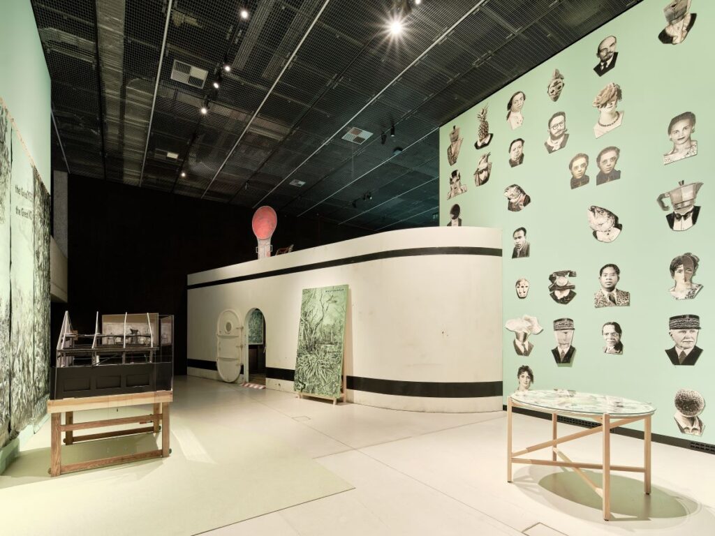 Výstava je koncipována jako prostorová koláž a rozvíjí se bez přísné chronologie. Rané animované filmy ze série Kresby pro projekci (Drawings for Projection, 1989–2020), které evokují období přechodu Jihoafrické republiky od apartheidu k demokracii, jsou prezentovány vedle divadelně pojatých instalací jako je kinetický model Přímo do její náruče (Right into Her Arms, 2016) nebo pětikanálová video instalace Ó, sentimentální stroj (O Sentimental Machine, 2015), inspirovaná méně známou epizodou ze života Lva Trockého.